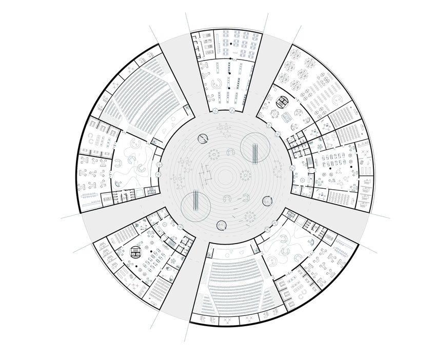 Theatron represents an insane solution of the waste depot site, standing as the center of a future conurbation outside the existing urban fabric; a new topological identity, a radical gesture of future urban development. It loops the traffic routes of neighboring cities within itself like a terminal. It gathers a mountain of waste into a bowl and converts it into energy to power the city's cultural center. Any mistake in the treatment of methane leads to a detonation. As with the amphitheater in Lucca, perhaps nothing will remain but the geometric logic of the Theatron inscribed in the new urban memory.